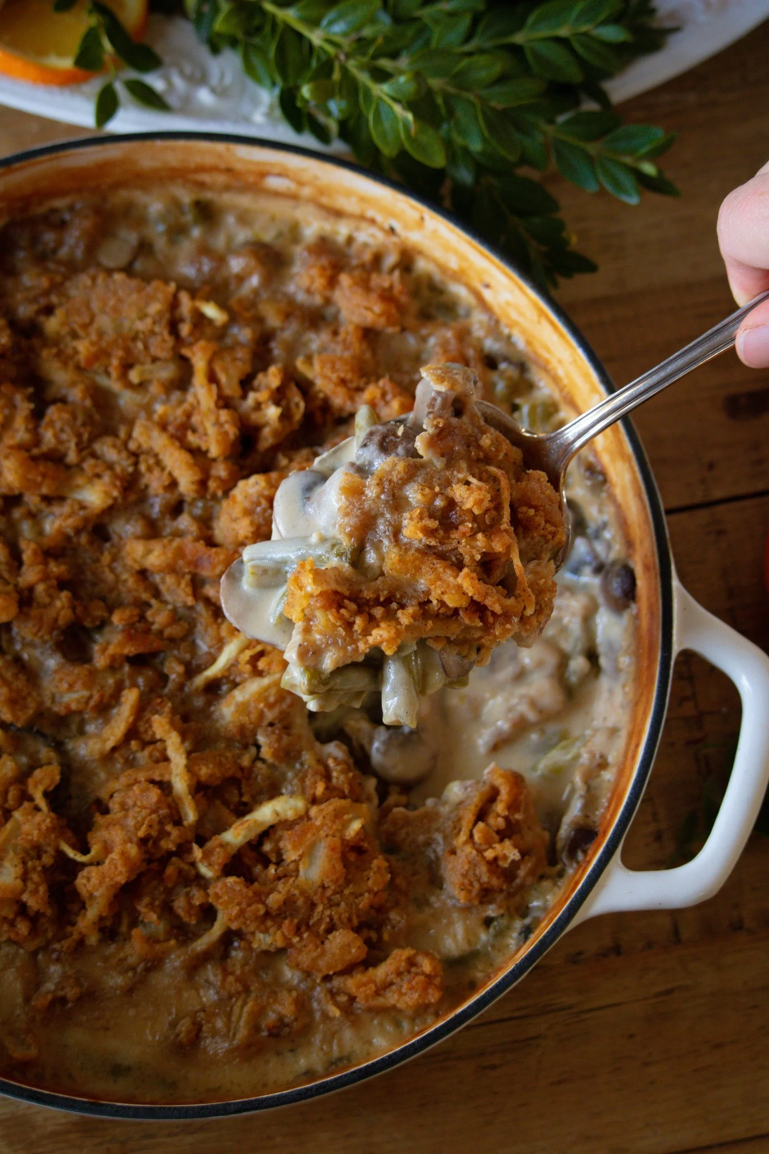 This has been the favorite casserole of winter that I have made thus far! I have a few more that I am planning to share throughout the month of January that I think you will love. But if you want a really delicious, creamy, comforting, somewhat green tasting dish than you want to try this. The homemade French fried onions really create a new depth to this meal. Do not buy the store bought version! Don’t do it! They are so easy to make and zero percent processed. Their flavor is incredible. You will not be disappointed, I promise!