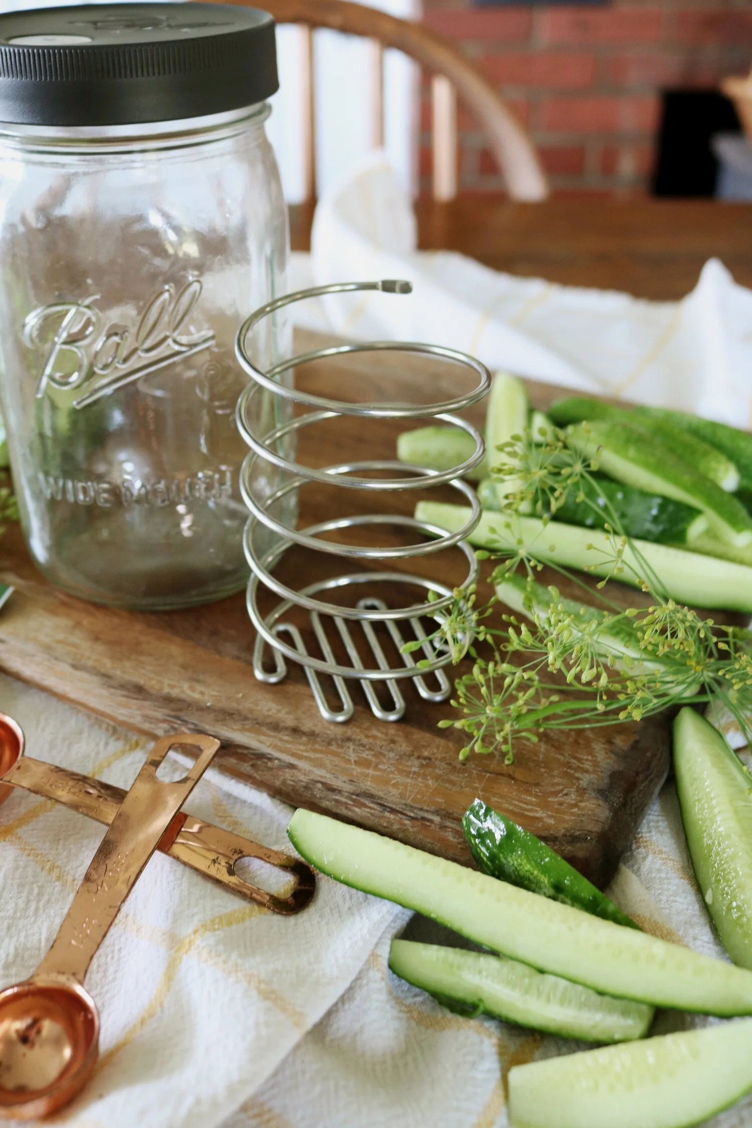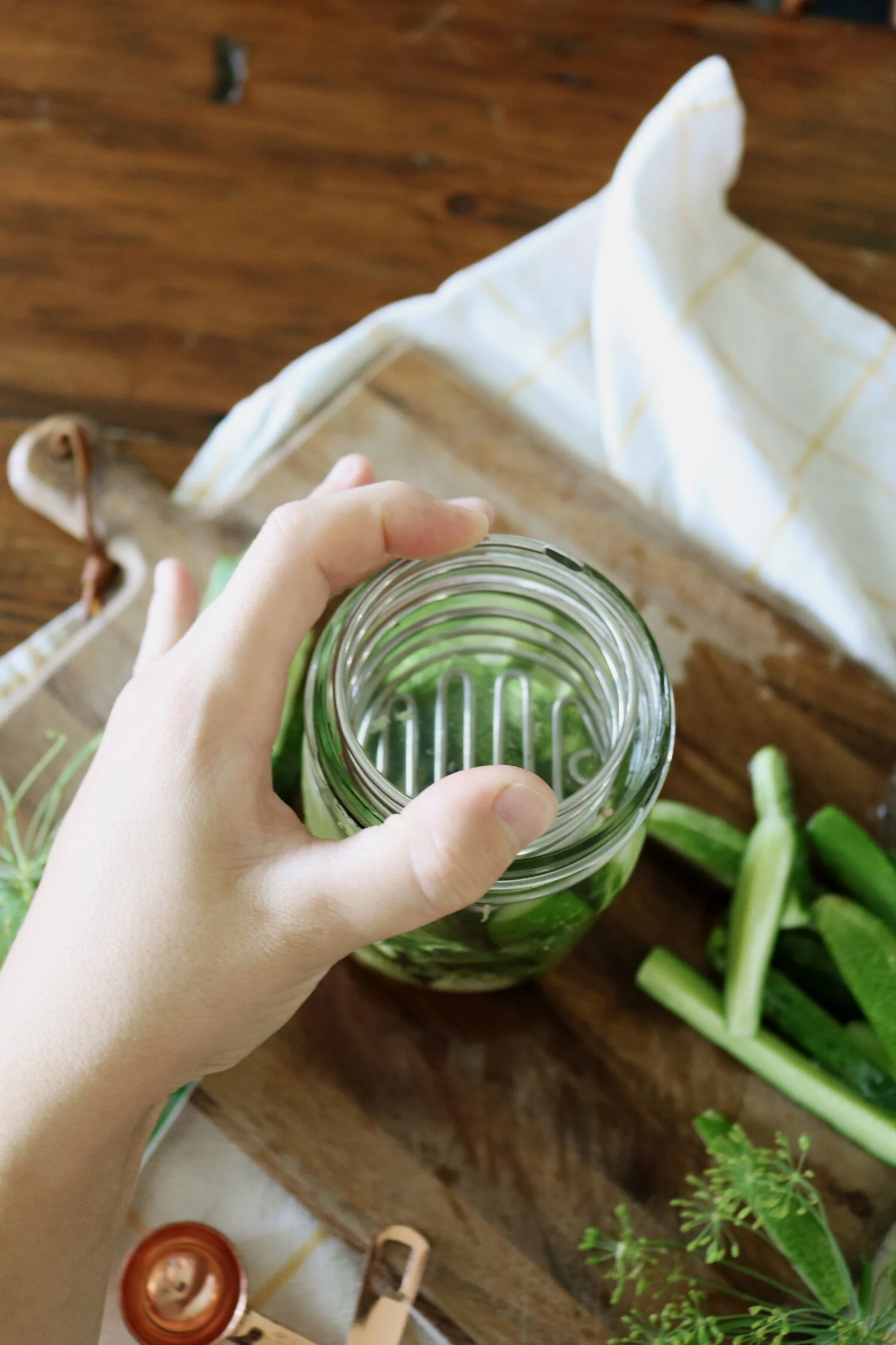 With the Ball® Fermentation Kit, this recipe felt so much safer to follow and try for the first time. I really enjoyed the spring, which helps keep all of the cucumbers submerged under the brine, and the lid has an excellent special filter on top to allow air flow!