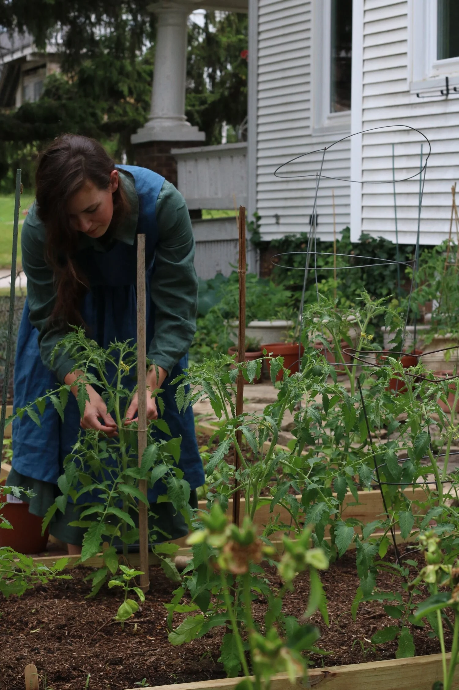 Trellis. Tomatoes can also be grown on a rope trellis, twine, or chord much like peas and beans. This would be a structure you would have to build yourself, and it’s one of the more difficult options because the tomatoes must be trained to grow vertically rather than bushing out. Another option that we have used on the farm is hog paneling or placing out stakes and placing entire lengths of rope in between them, almost like a fence!