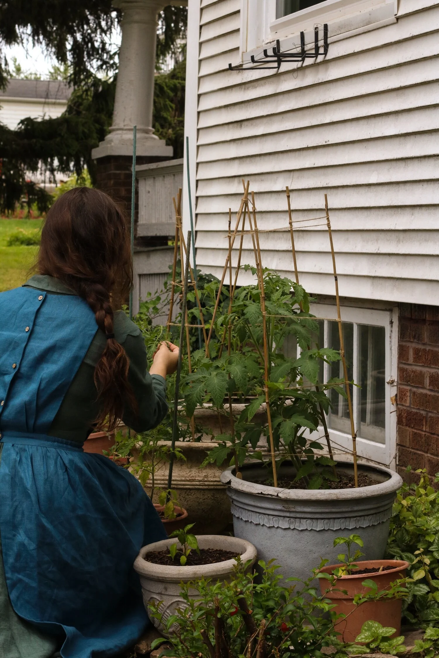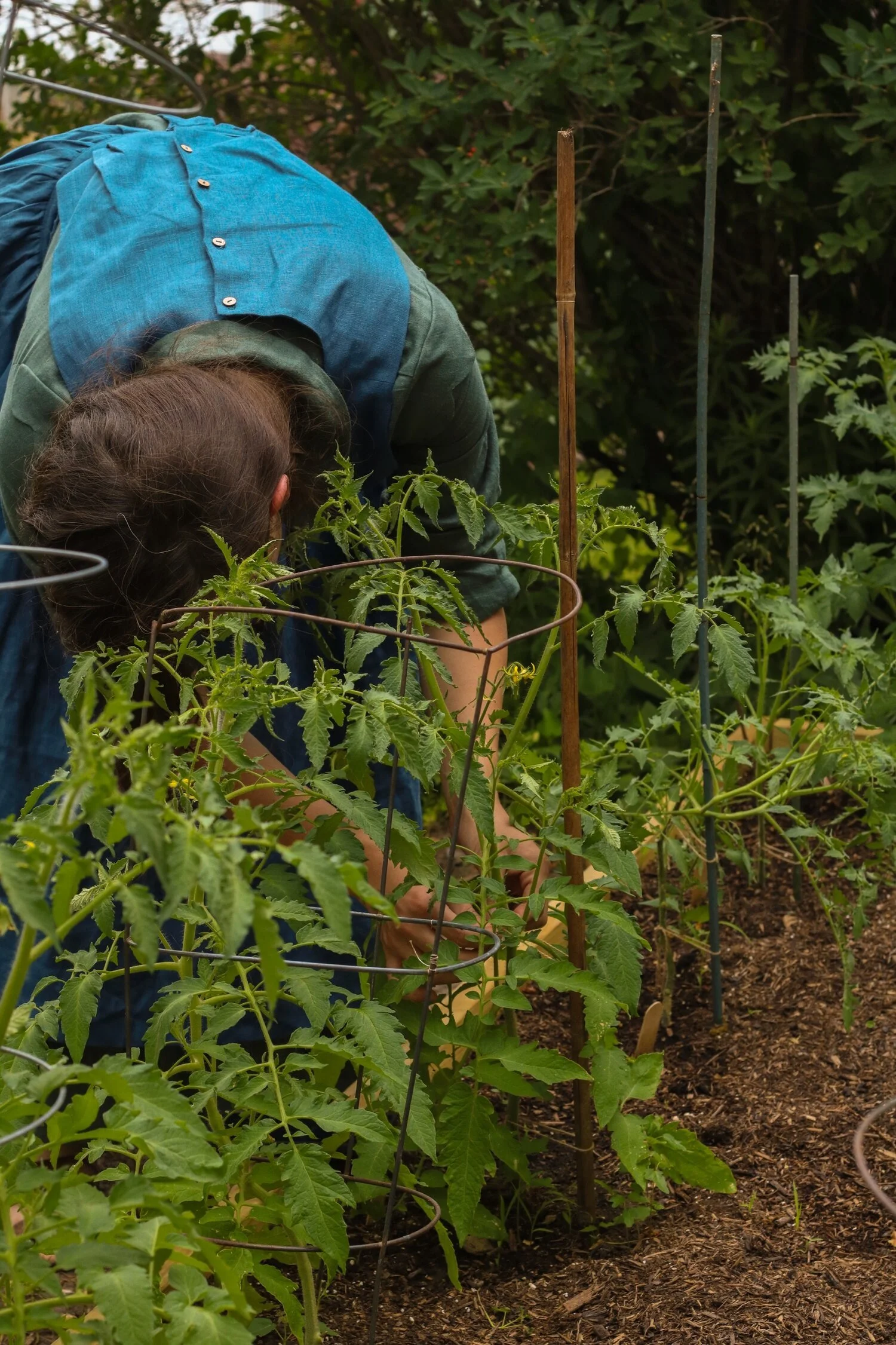 Cages. This is the most commonly used method for housing tomato plants. It is easy and foolproof, no pruning required (though it does help). Tomato cages are placed over the top of your plant right around when they are planted, or at least that is the best timing to allow them to grow up into the cage without accidentally breaking off leaves or disturbing the roots. Cages can be made from metal, bamboo, or simply sticks and some twine. You can get really creative with this if you want a more rustic look!