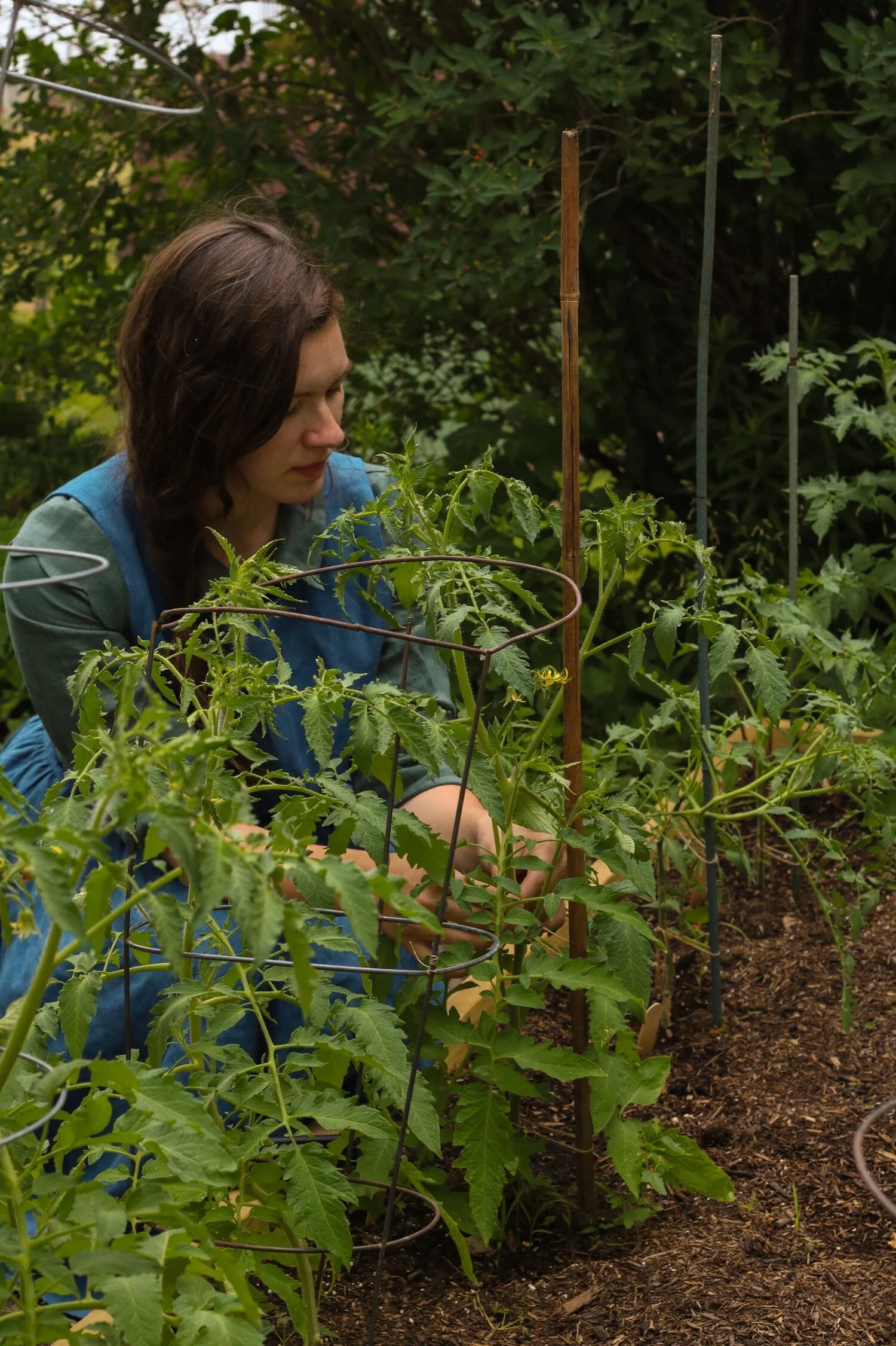 My tomatoes this year are so large and beautiful! I don’t think I have ever had more beautiful plants; I hope they stay that way for the season. You never know what can happen! I have several training methods I am using this season, so I am looking forward to seeing which I like best. It has been lovely to have the opportunity to experiment a bit more with trellising now that the garden is much smaller.