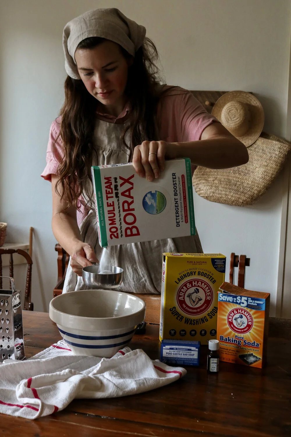 Natural laundry care was one of the first transitions I made into a more wholesome, simplistic, and sustainable lifestyle. Changing out our cleaning products and routines is one of the fastest and easiest ways to get started into the world of non-toxic living, and I love all that caring for laundry entails. I was just talking with my mom, Jill, the other day about how I actually enjoy taking the time to do laundry. It’s the part where I have to put it away that I dread! For whatever reason, it’s the last thing I always find myself cleaning up. I think it has a lot to do with the fact that our dressers and closets are all upstairs, and it’s usually inconvenient for me to put it away either because my baby is downstairs playing or upstairs napping. The wonderful world of motherhood!