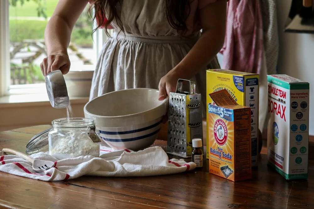 Homemade Stain Stick/Bar. I shared this on the blog a while back and have absolutely loved using it. It really works! The stain stick uses borax, washing soda, castile soap, and plant oil to remove stains in a more concentrated form. Simply wet the fabric, rub on the stain stick, and allow it to sit for at least 1 hour or up to 2 weeks. Then wash as normal!