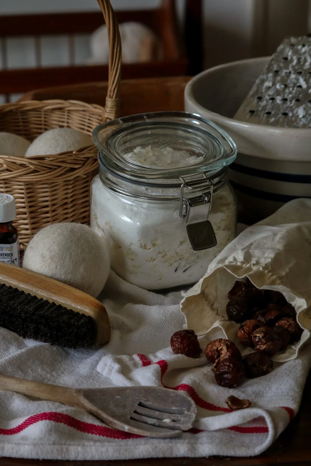 Soap Nuts. Also known as soap berries, this plant from the Sapindus mukorossi tree are harvested in the Himalayan mountains. They contain saponin, a plant-based natural cleaner that works well for washing clothing and can entirely replace your detergent. Cool, right? Just add 3-4 soap nuts to a small muslin bag, place in your washing machine barrel with your dirty laundry, and wash as normal. You can add a little detergent for scent or if your clothes are really dirty. Soap nuts can be used 3 or 4 loads and then composted.