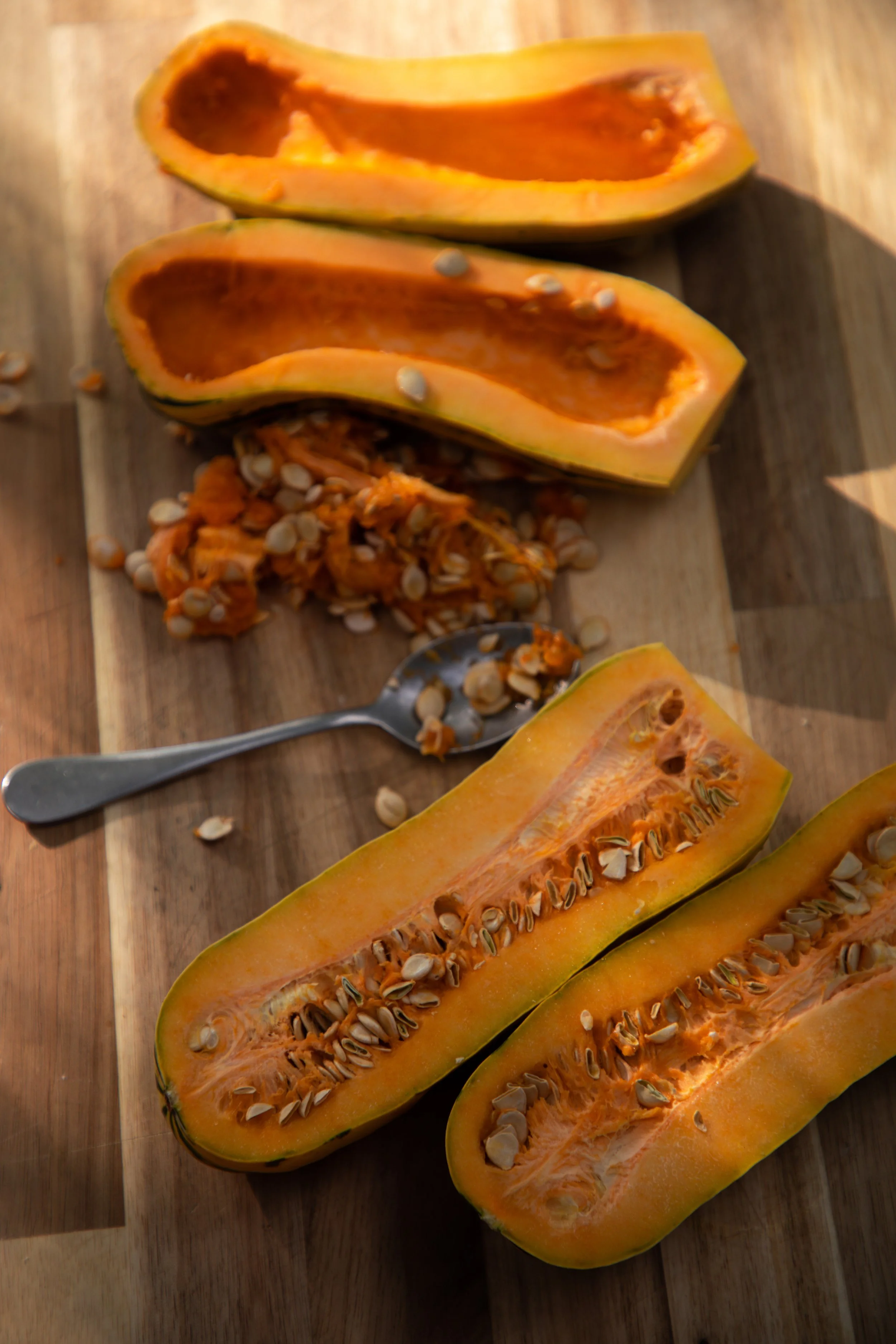 For this particular dish, I roasted the squash wrapped in tinfoil over hot coals. I tried my best to think of how the pioneers may have cooked something similar, or even farther back in history, as tinfoil was not invented until 1903 in France for manufactured foods, so it was not necessarily available to the public yet. I assume that they would have roasted the squash just plainly, touching the hot coals. While I could have gone all the way with this recipe to make it historically accurate, we are more or less trying to showcase inspired methods of cooking so that it still tastes good for the modern person!