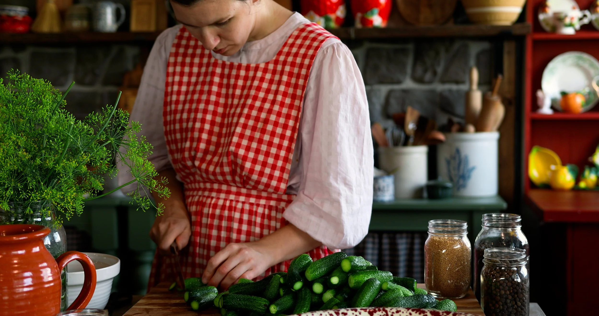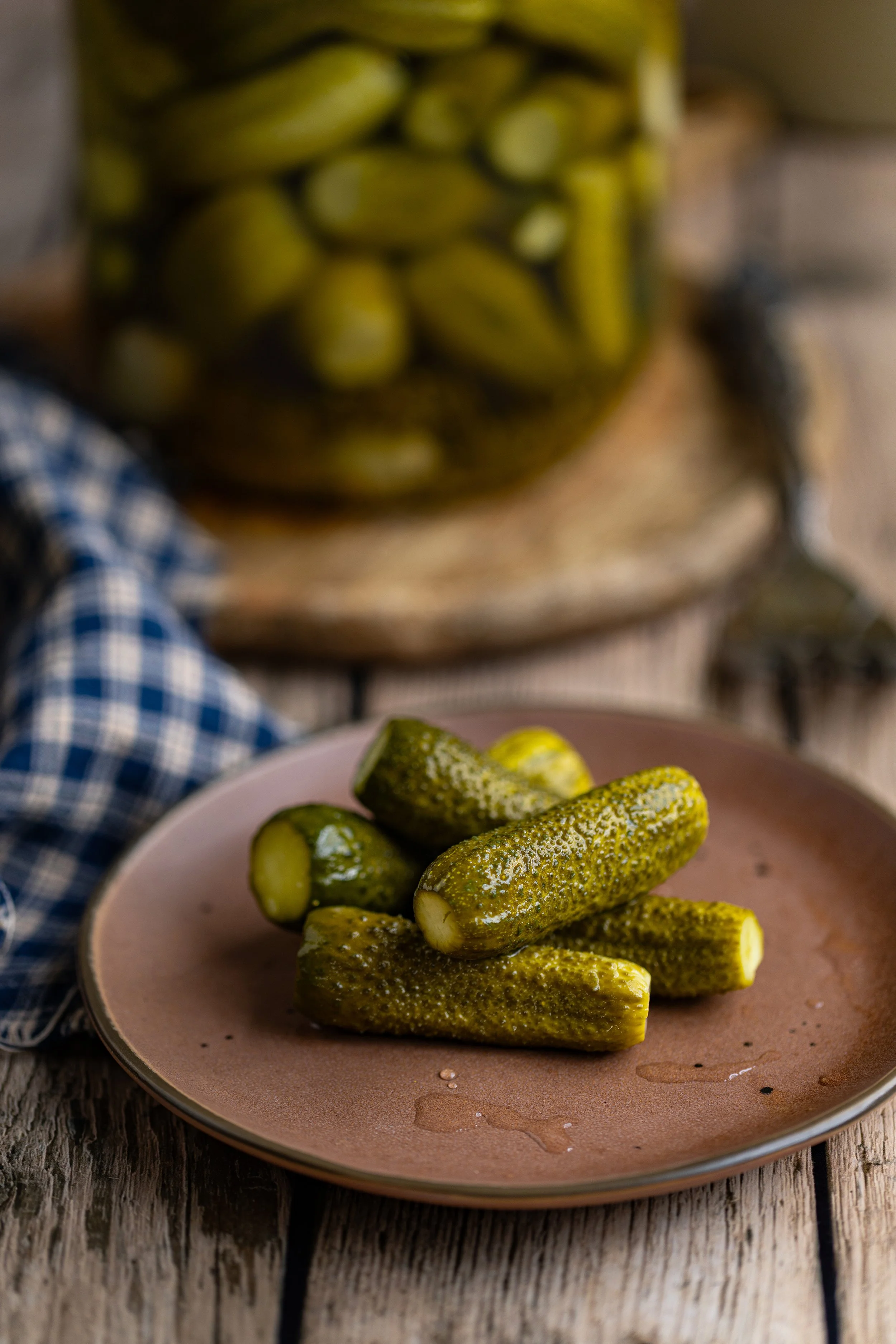 So far we have been loving the refrigerator pickles the most! Which do you prefer? I love that we can make both options; some to enjoy now and some to enjoy later into the winter and spring months. I have been chopping my pickles super chunky. I noticed they were being sold at a little roadside cart this way, and I thought it was just so old-fashioned and rustic looking!