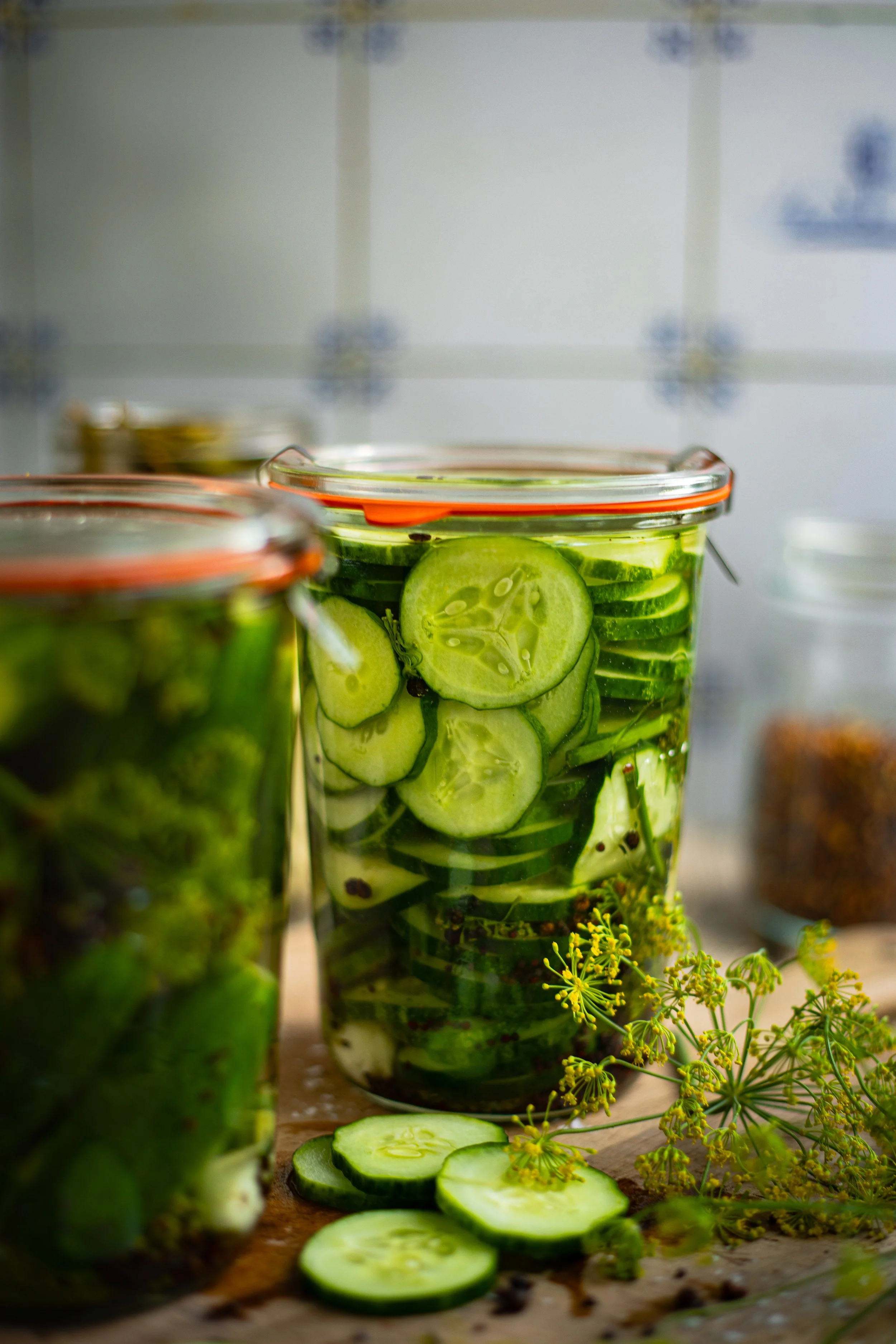 Hot Water Bath Canning Method: Rather than pickling these cucumbers in the fridge, they can be canned in a hot water bath for long term storage. Pickles are a high acid food, making them safe for hot water bath canning. Canned pickles, when done correctly, can be stored for 18 months or longer at room temperature in a cool, dark place such as a pantry cupboard. You can find instructions for canning on the recipe card below.