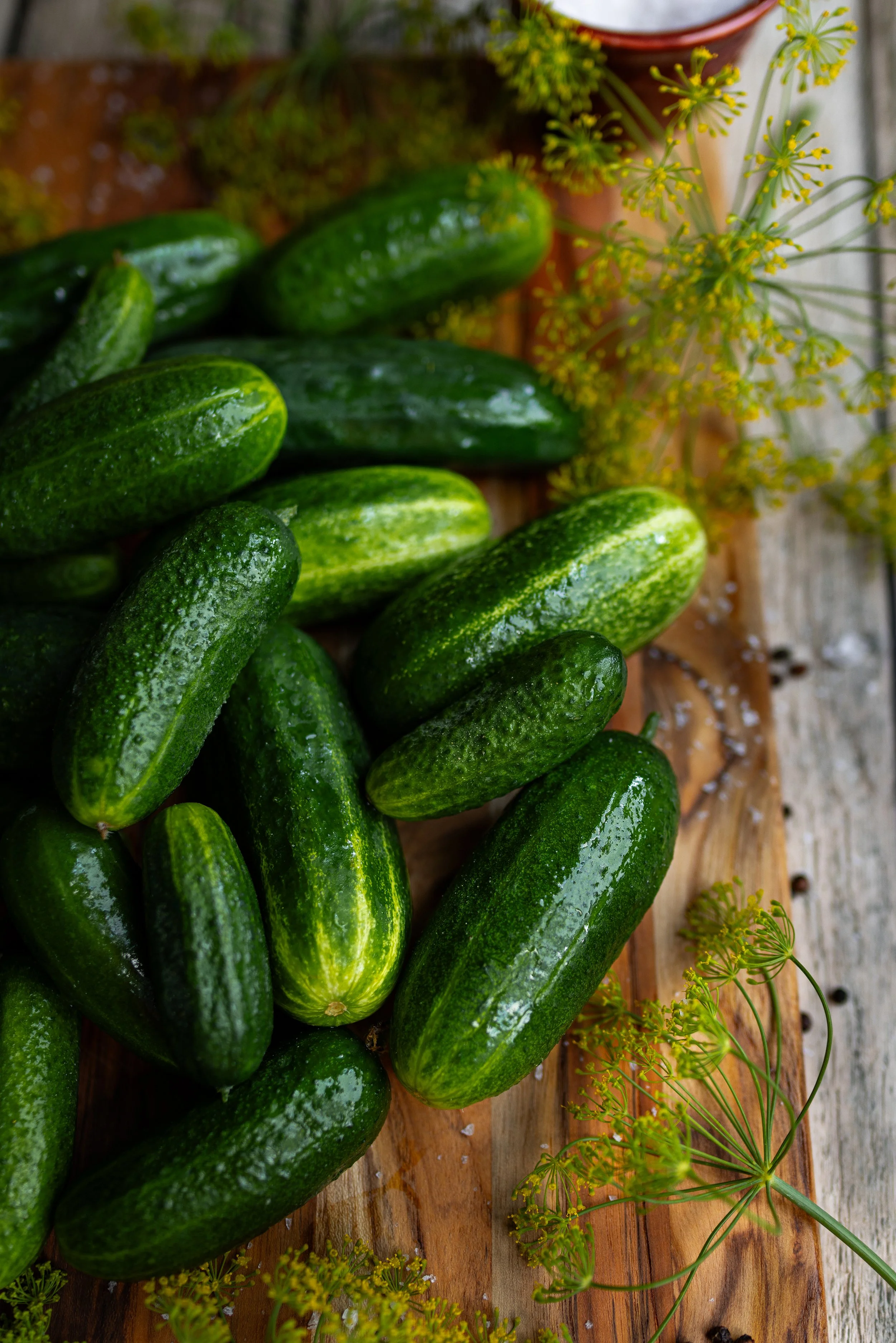 - 6 lbs (2.8 kg) pickling cucumbers, washed and blossom ends removed