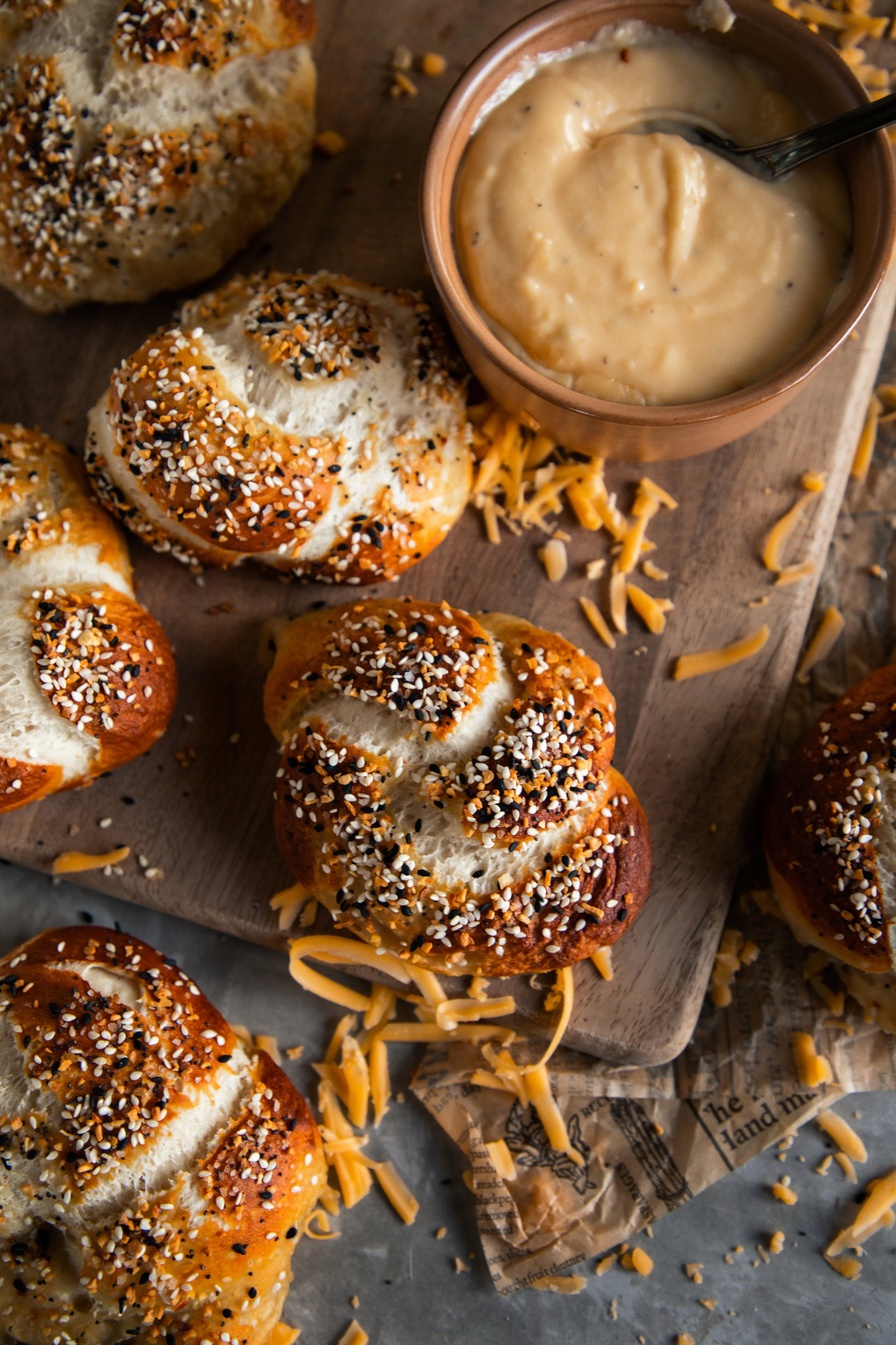 “After a long day of adventuring, you might imagine dropping into a fantastical tavern with stone walls and a roaring hearth. Settle in by the fire and enjoy the comforting taste of a soft pretzel, enriched with beer and served with a side of warm honey mustard cheese sauce. Flavored with Everything Bagel seasoning, these pretzels make an incredible appetizer or comfort food snack for your own cozy fantasy tavern.”
