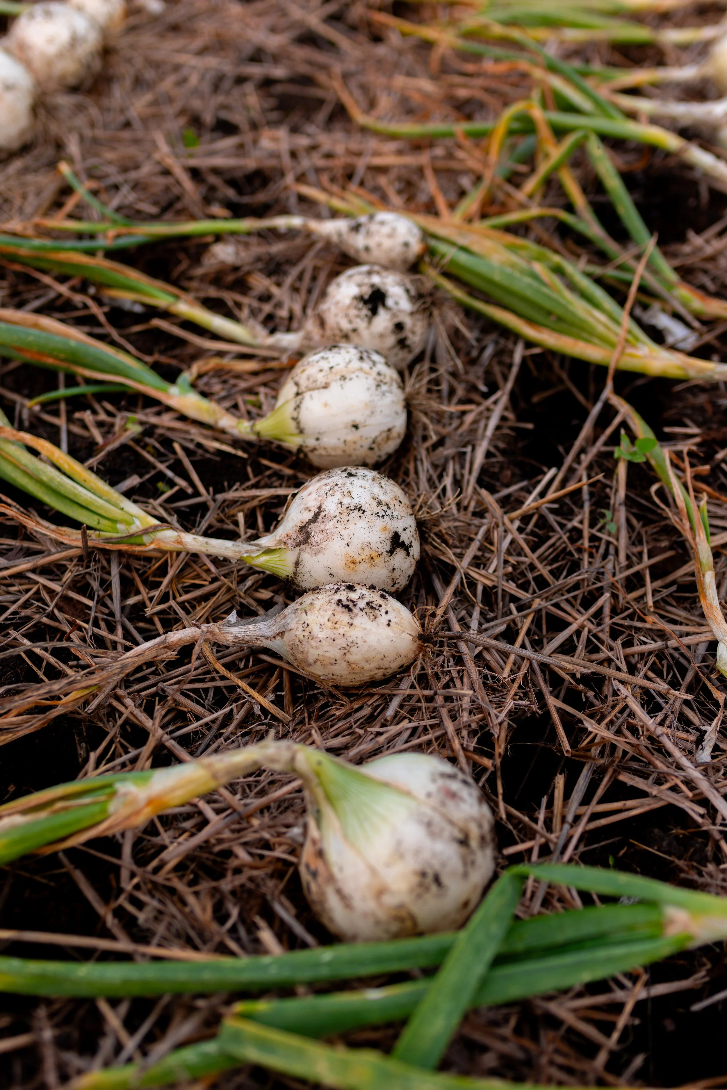 Do Not Wash: Leave the dirt on your bulbs! When you pull the bulbs from the ground, you can gently brush off any large clumps of soil. But leave the rest. Any leftover soil can be brushed or rubbed off later, once fully cured.