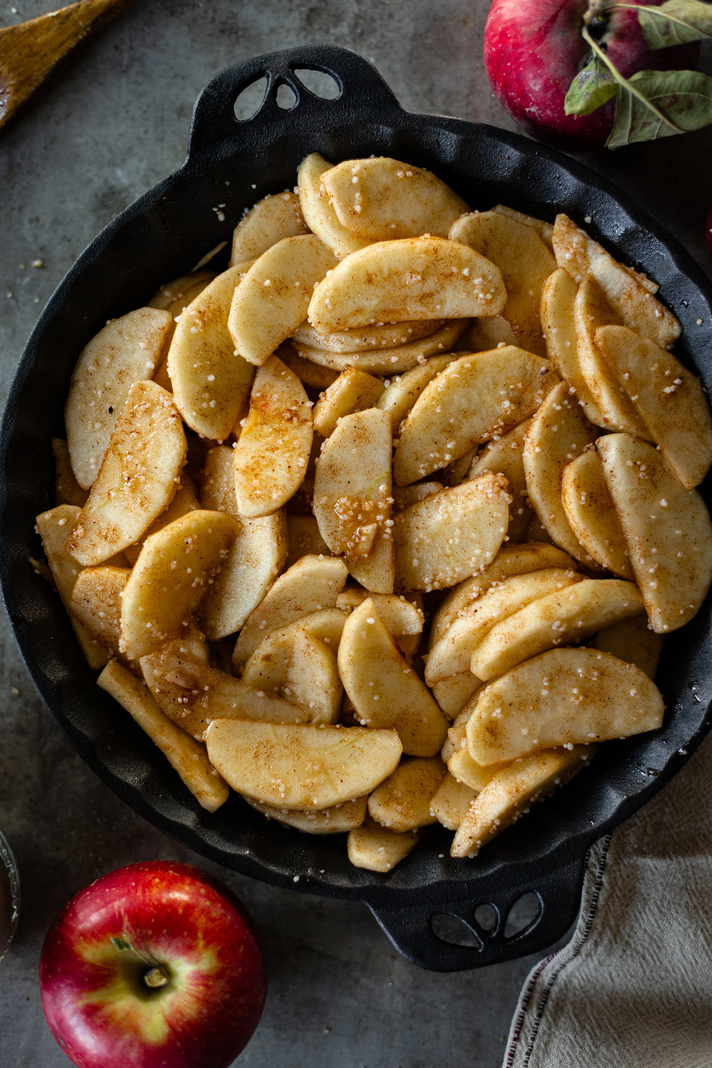 Apples. Any type of apple will work, though I think mixing different types makes for the best flavor. Try mixing tart and sweet apples like Granny Smith and Honeycrisp!