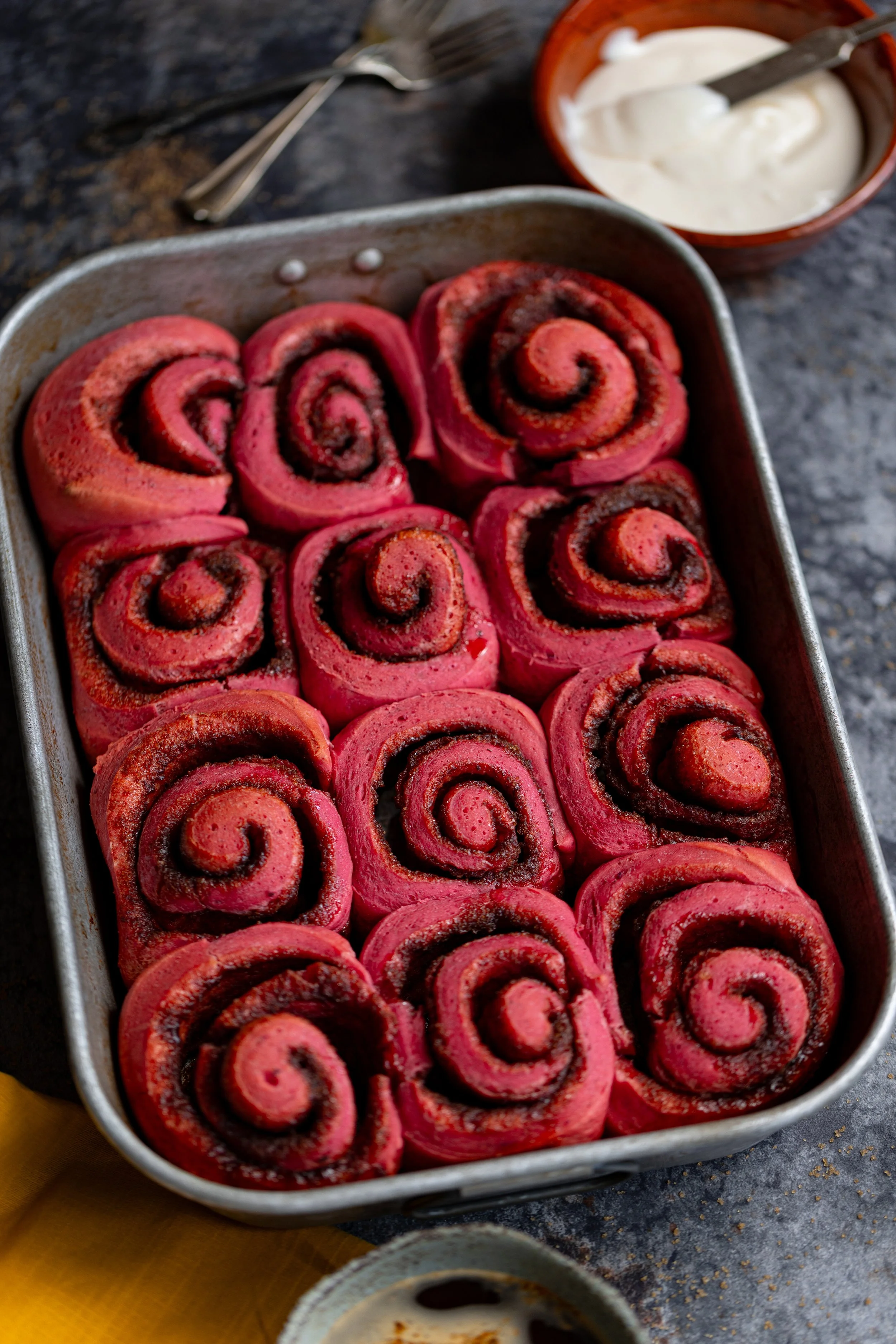 Naturally Pink Cinnamon Rolls (with Beetroot Powder)